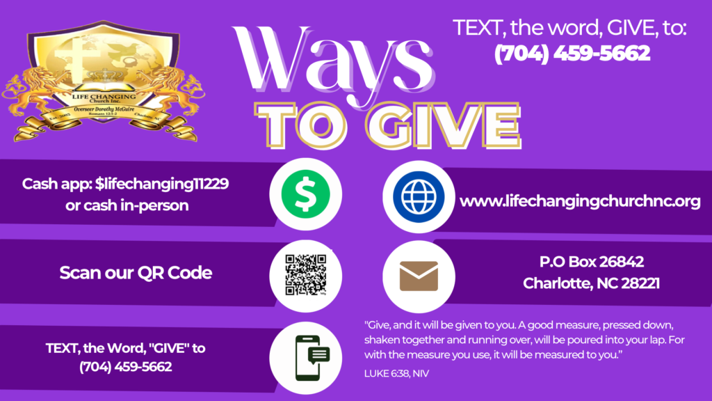 We offer multiple convenient ways for you to give, making it easy to support the ministry in the way that works best for you. Your generosity plays a vital role in everything we do, and we are truly grateful for your willingness to sow into the work of the Kingdom. Because of faithful givers like you, we’re able to serve our community, grow our outreach, and continue sharing the life-changing message of Jesus Christ. Thank you for being a part of what God is doing through Life Changing Church.